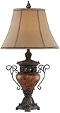 Universal Lighting and Decor , Bring a new focus to home decorating with this wonderfully visual table lamp design. The piece features an urn-style base in a bronze crackle finish, accented with iron scroll handles. A faux silk bell shade rests peacefully on top. ...