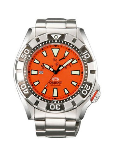 Orient Men's SEL03002M, Features a 21-jewel Orient automatic (self-winding) movement with a hacking and hand winding function, a power reserve meter, a date feature at 9:00, and a uni-directional rotating bezel with luminous dot marker. Includes a screw-down offset crown, a sapphire crystal, luminous hour markers, and luminous black hour and minute hands. Case: Stainless steel, polished and brushed, 46mm x 13.3mm thick. Band: Stainless steel bracelet with dual push button deployant clasp. Water Resistance: 200 meters. Warranty: 1 Year.