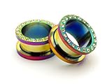 Best Rainbow Steel Cz Screw on Tunnels - 1/2 Inch - 12mm - Sold As a Pair