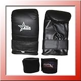 Best Deals Black bag mitts boxing sparring punching training black free hand wrap